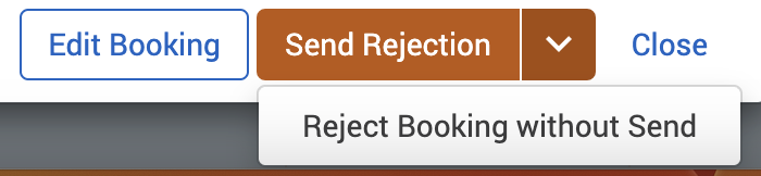 ⌄ drop-down list followed by Reject Booking without Send to just cancel the booking.