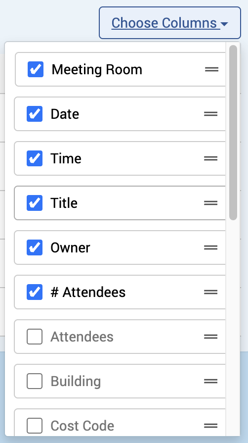 For View as table, select [Booking Time] or [Booking Owner (you)] on the booking.