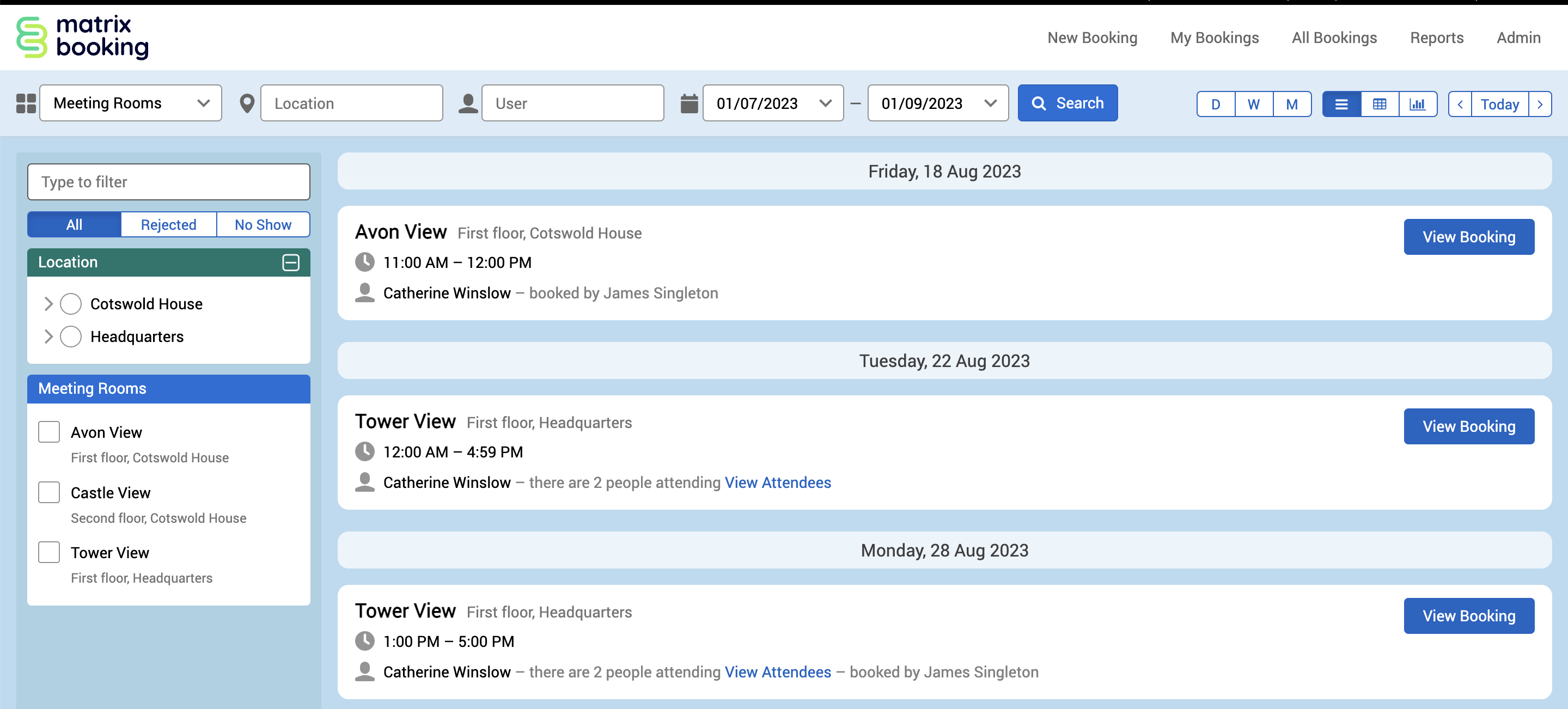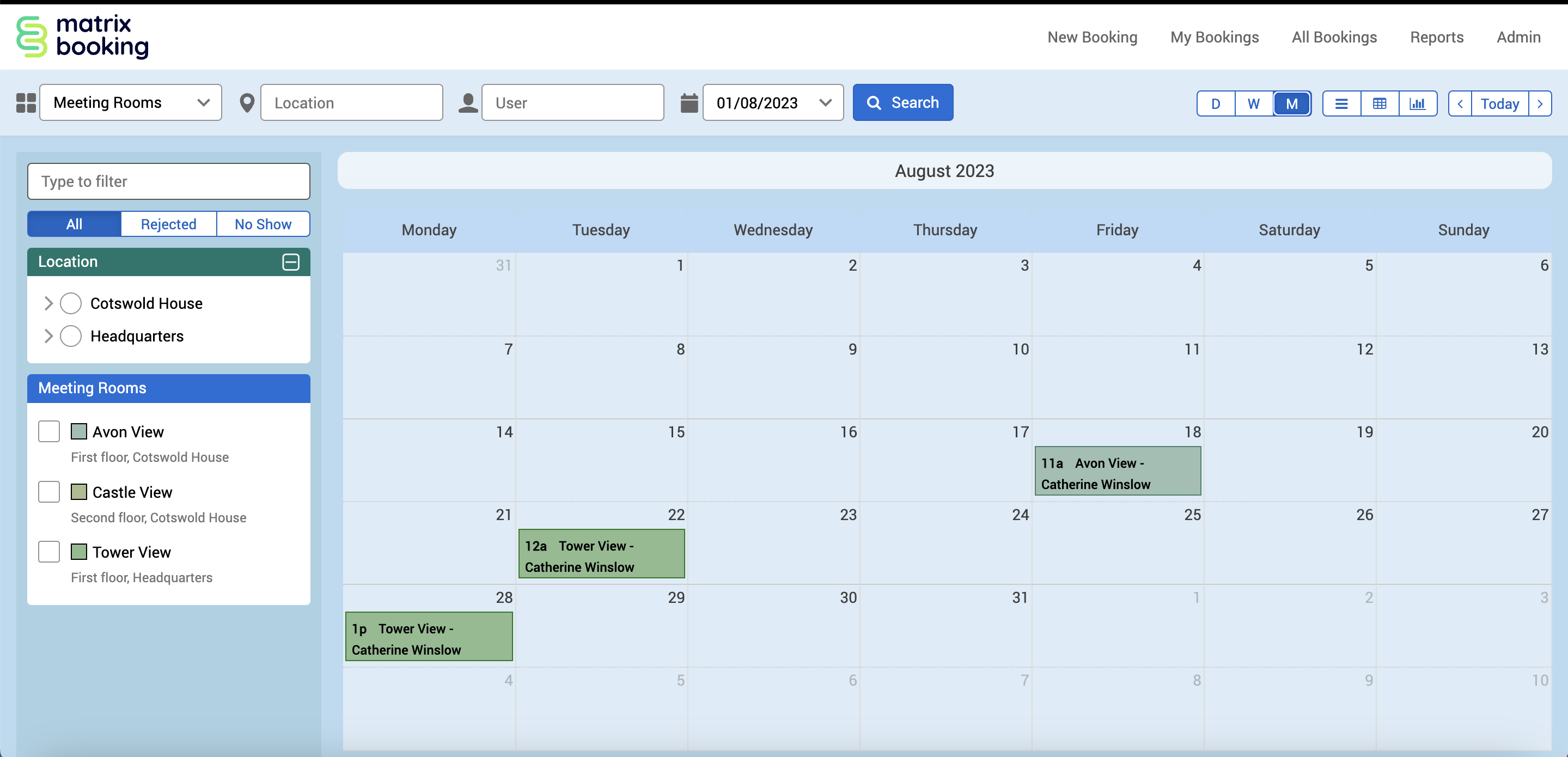 REJECTED | A booking that hasn’t been approved by a Location Manager or above, or accepted by the Matrix Booking system. | Status column |