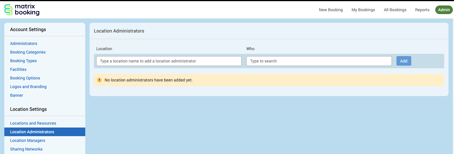 If you make a mistake, move away from the page (for example, select another option in the Admin menu in the side menu, return to the Locations and Resources page) and the settings won’t be applied.