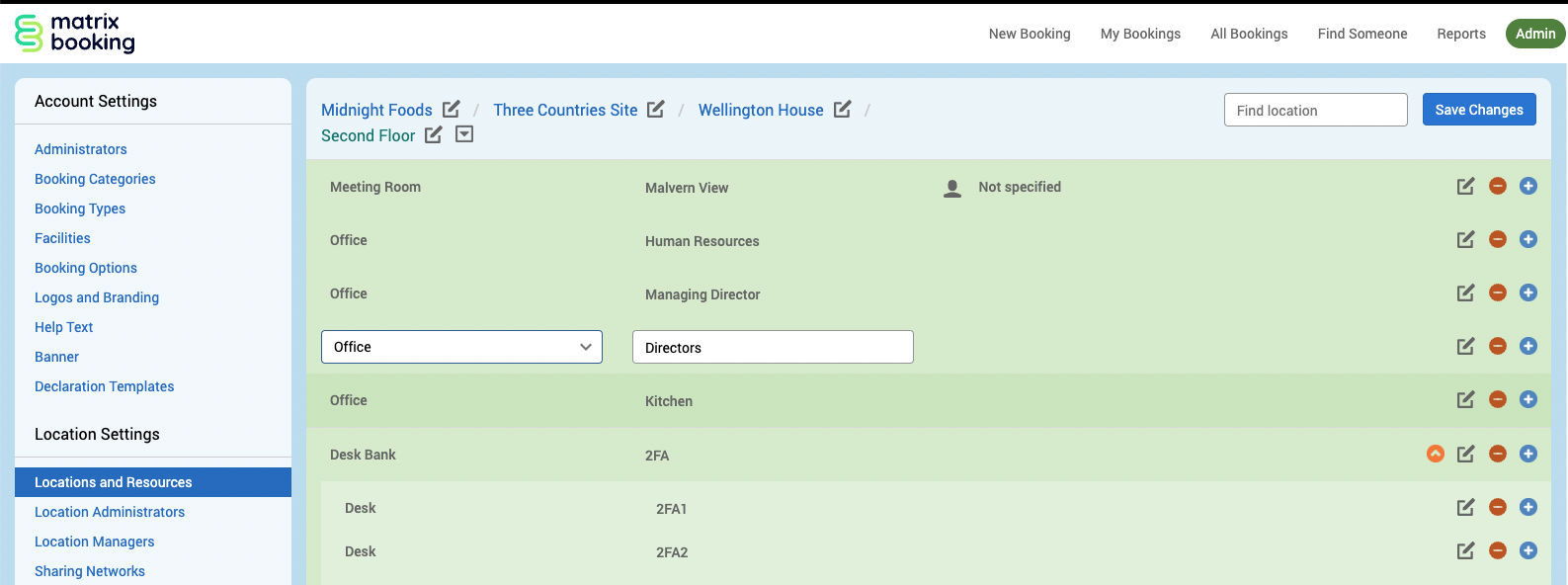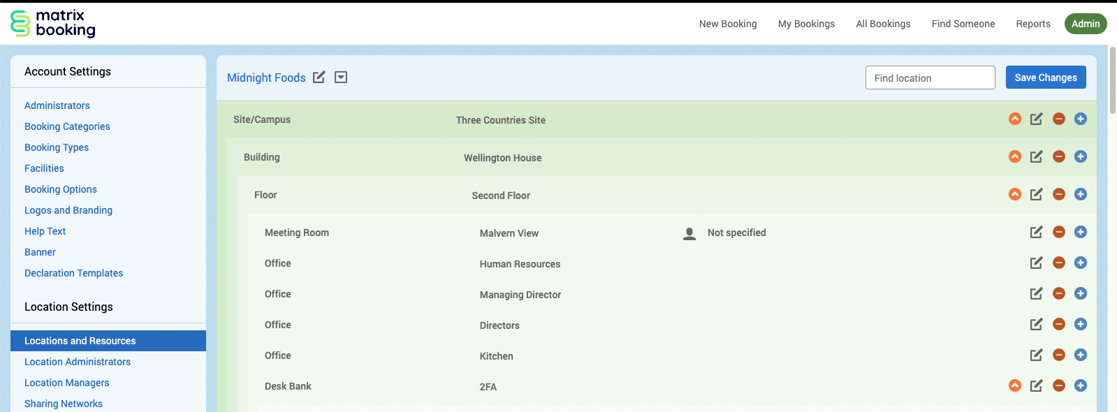 As an Administrator, you can edit your own Locations and Resources hierarchy, so you can add and remove your own floors, rooms, desks, and more. This page explains how to edit the location hierarchy of your organisation in the Matrix Booking web app.