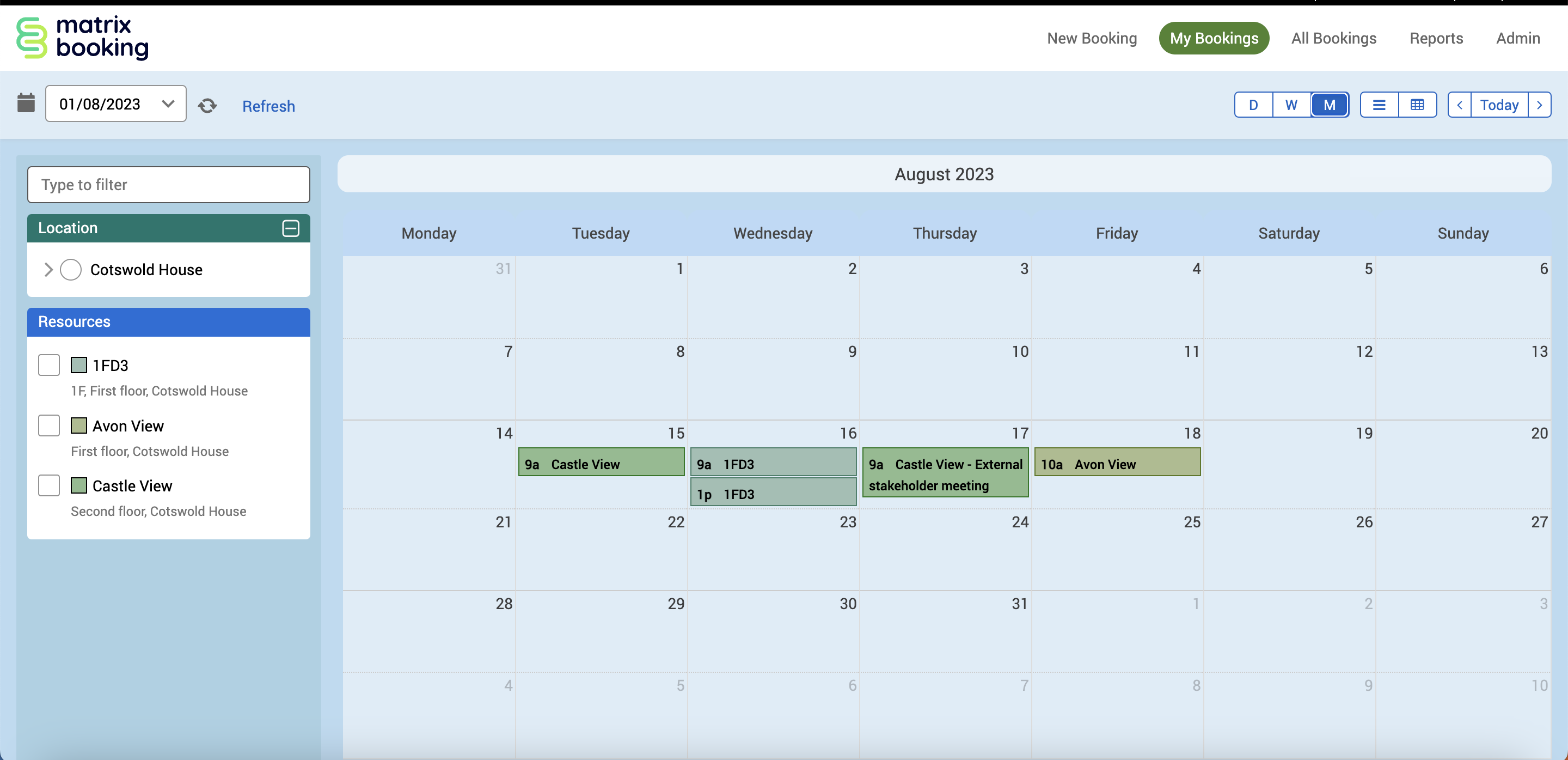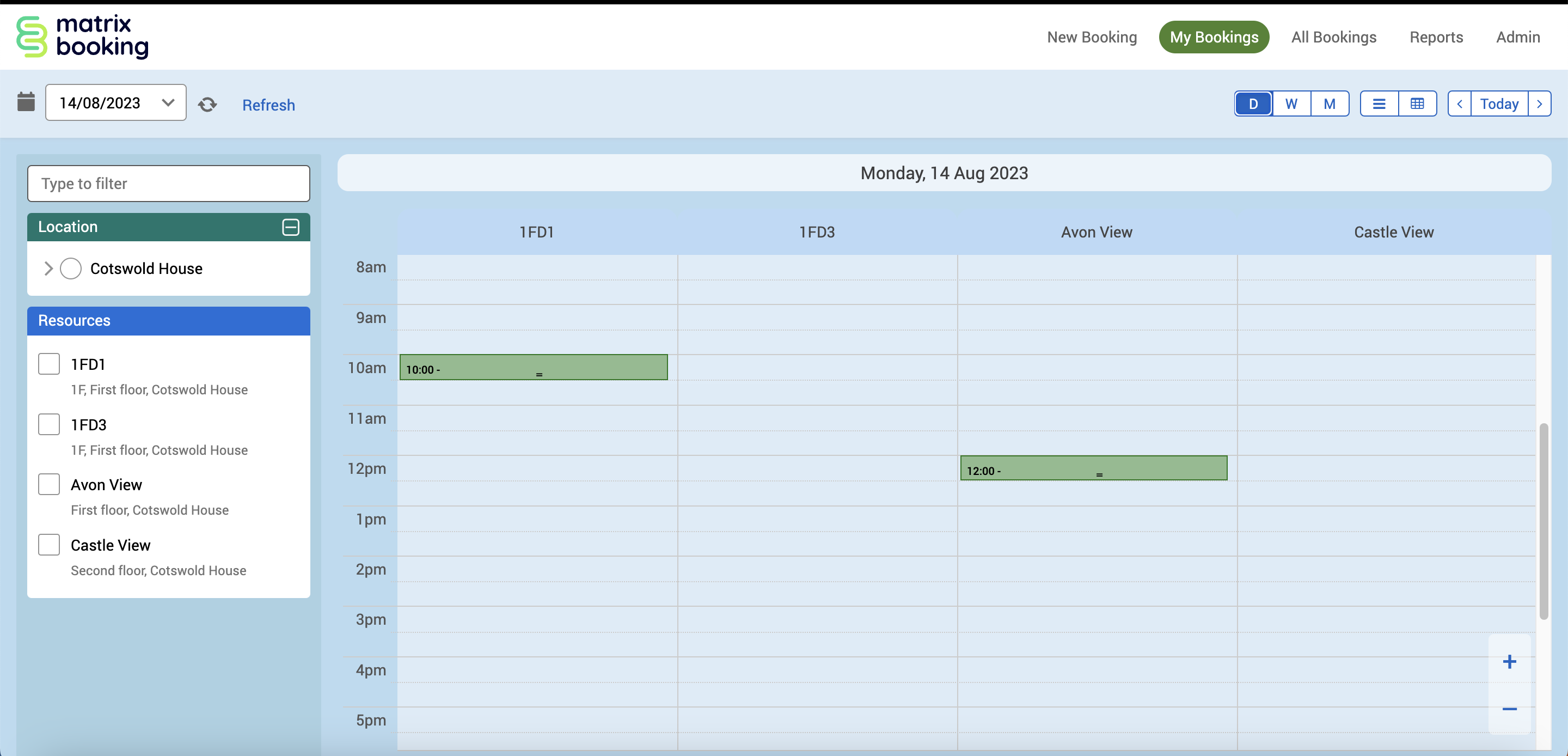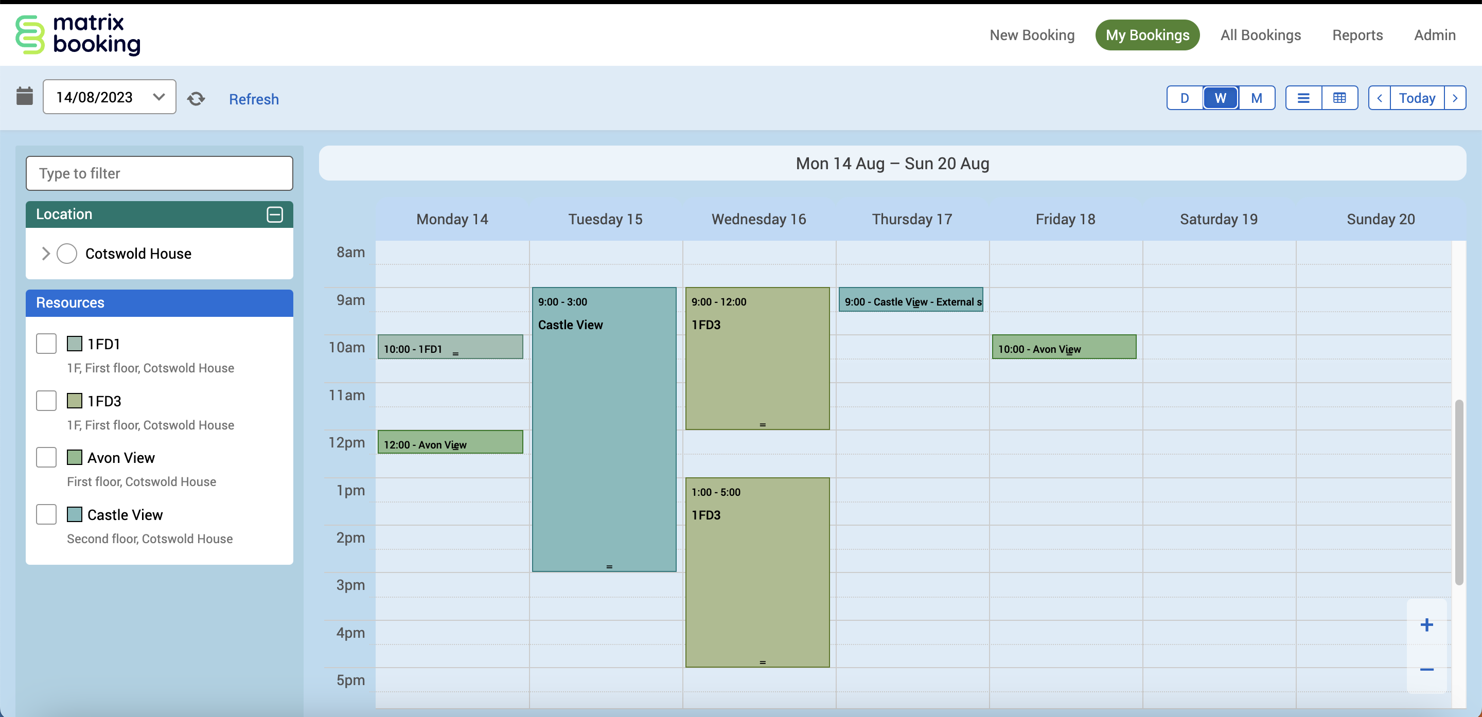 Select View by week to see your bookings on a particular week. The current week is the default.