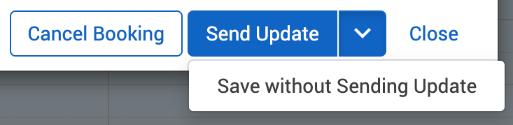 ⌄ drop-down list followed by Save without Sending Update to just save the booking changes.