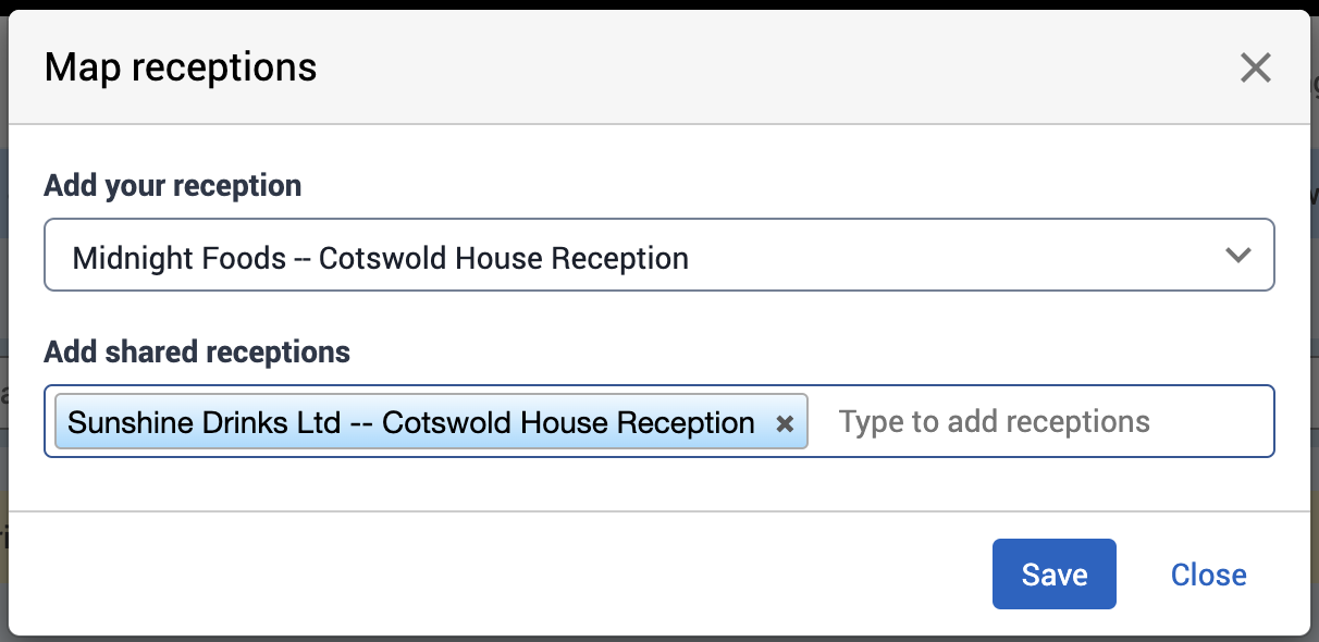 Now that your shared reception has been set up, these receptions can be mapped to represent the same reception within Matrix Booking.