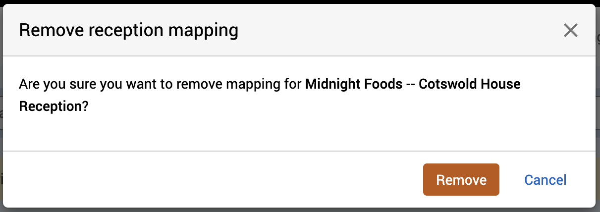 Select Remove. The Remove reception mapping warning pop-up will appear.