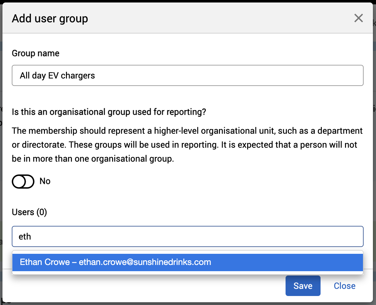 Enter the name of the user group you’re creating in the Group name text box (for example, All day EV chargers).