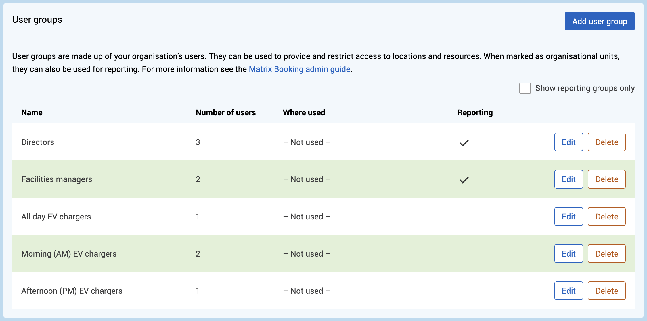 It wouldn’t be fair if someone who had a longer commute had a shorter charge time. You can restrict users’s access to the resources that better suits their needs (for example, someone living closer to the office can have a shorter charge time). You can do this by setting up user groups.