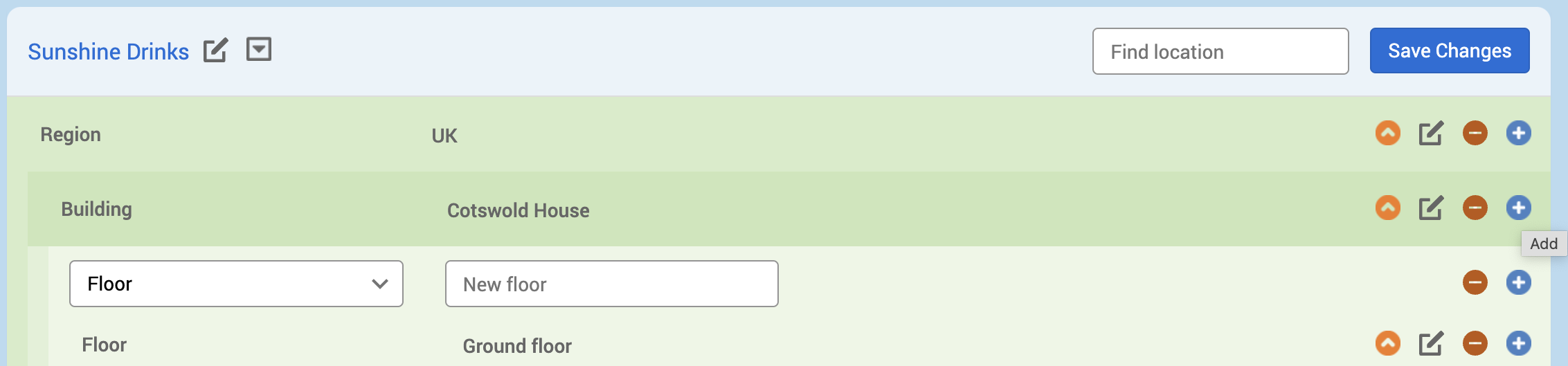 Select the Add (blue +) button next to the building that has your resources. A new row for your location will appear.