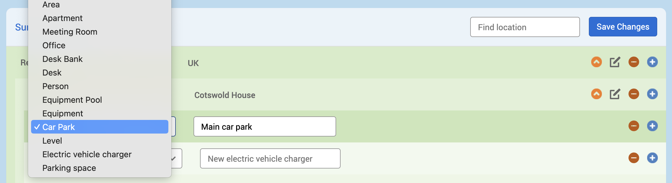 Select your location or resource type from the drop-down list (for example, Car Park).