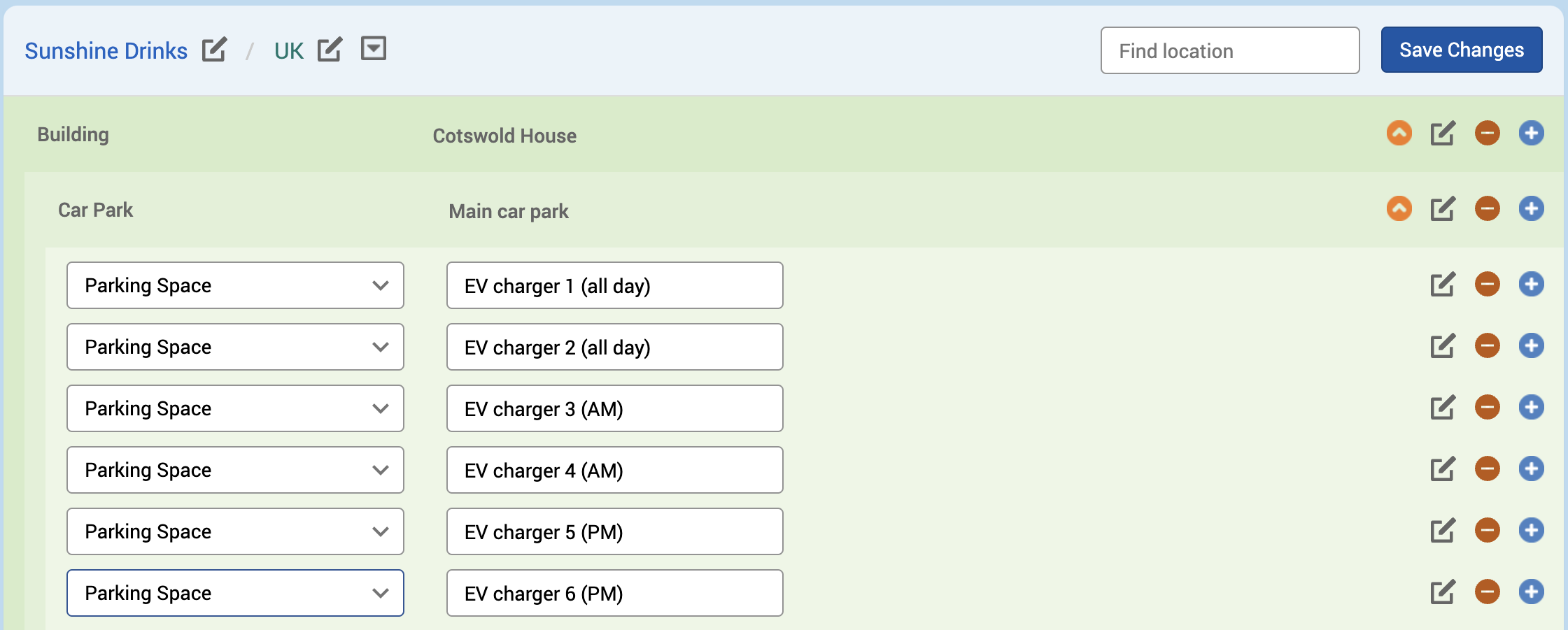 Enter the name of your your location or resource type (for example, Main car park). A new row for your resource will appear automatically.