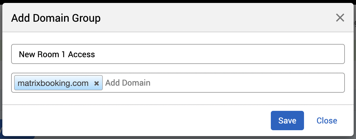 Enter the name of the domain group you’re creating in the Name text box (for example, New Room 1 Access).
