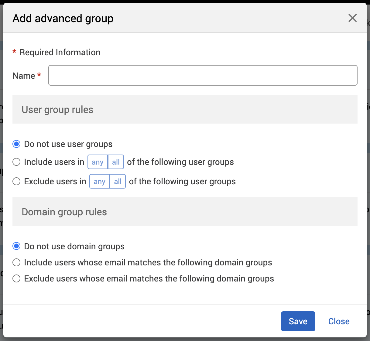 Under the User group rules section, select either:
