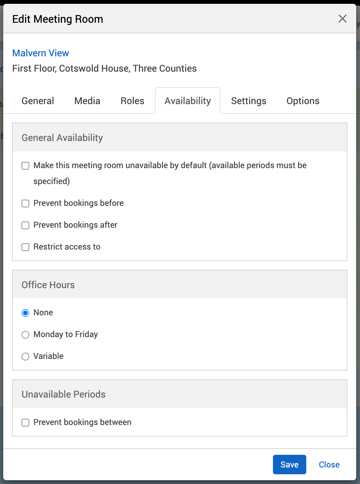 Select the Availability tab (for more information, see Availability tab).