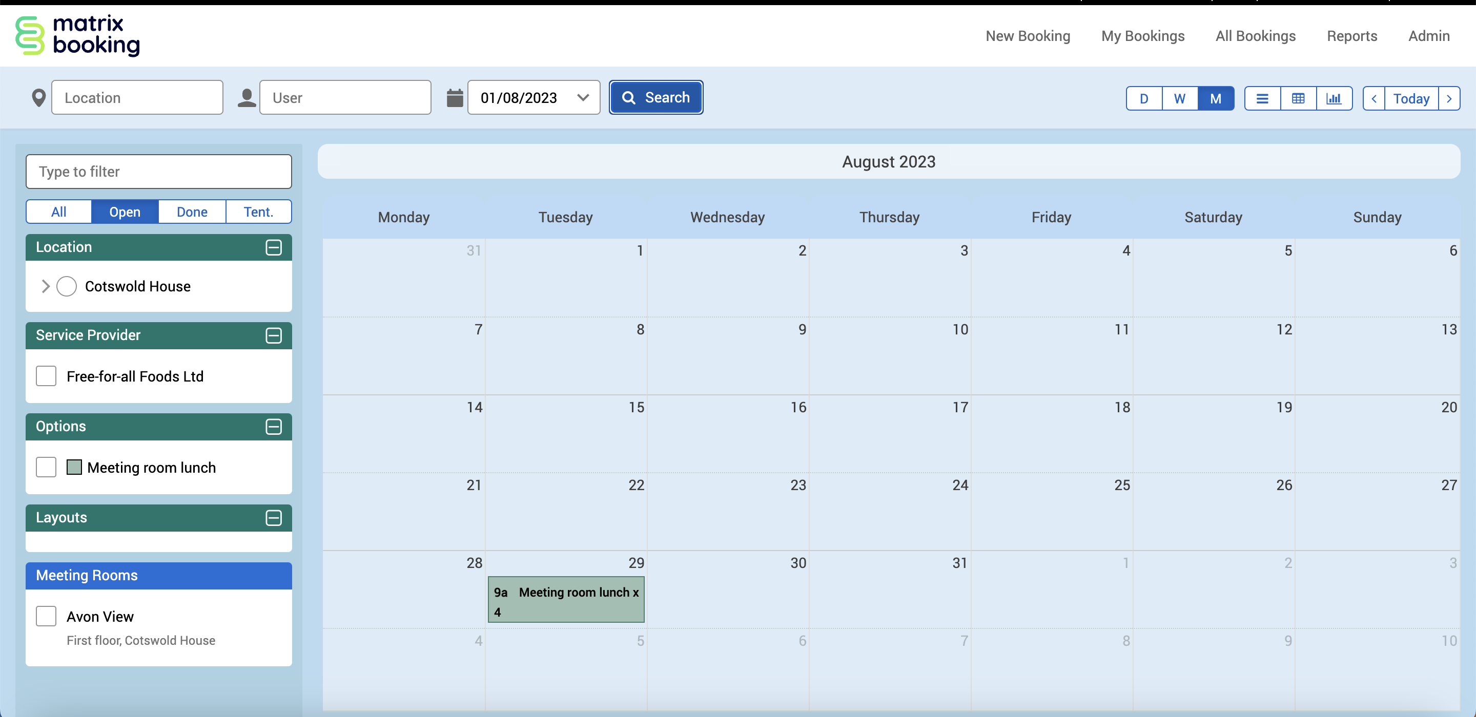 Select View by month to see all the bookings on a particular month. The current month is the default.