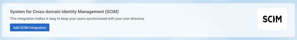 On this page, you should see an integration banner relating to SCIM as below. Select the Add SCIM Integration button.