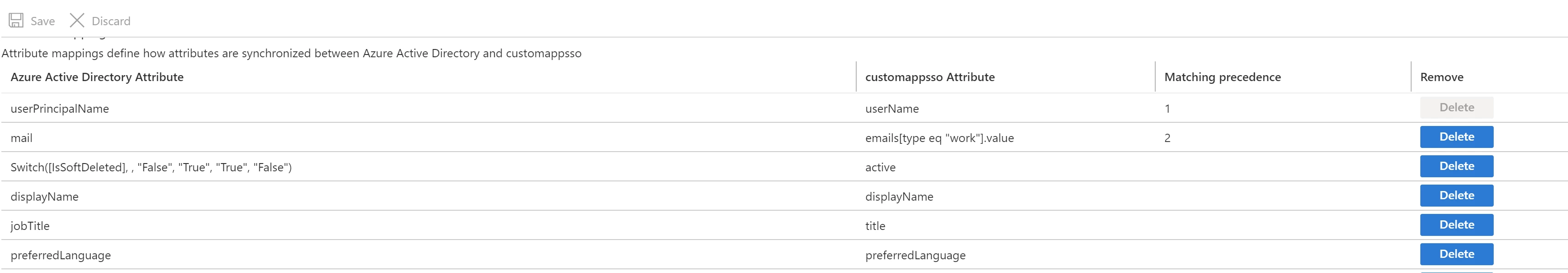 You’ll see a list of mappings, similar to the image above, from your Entra ID Attributes to the customappsso Attribute.