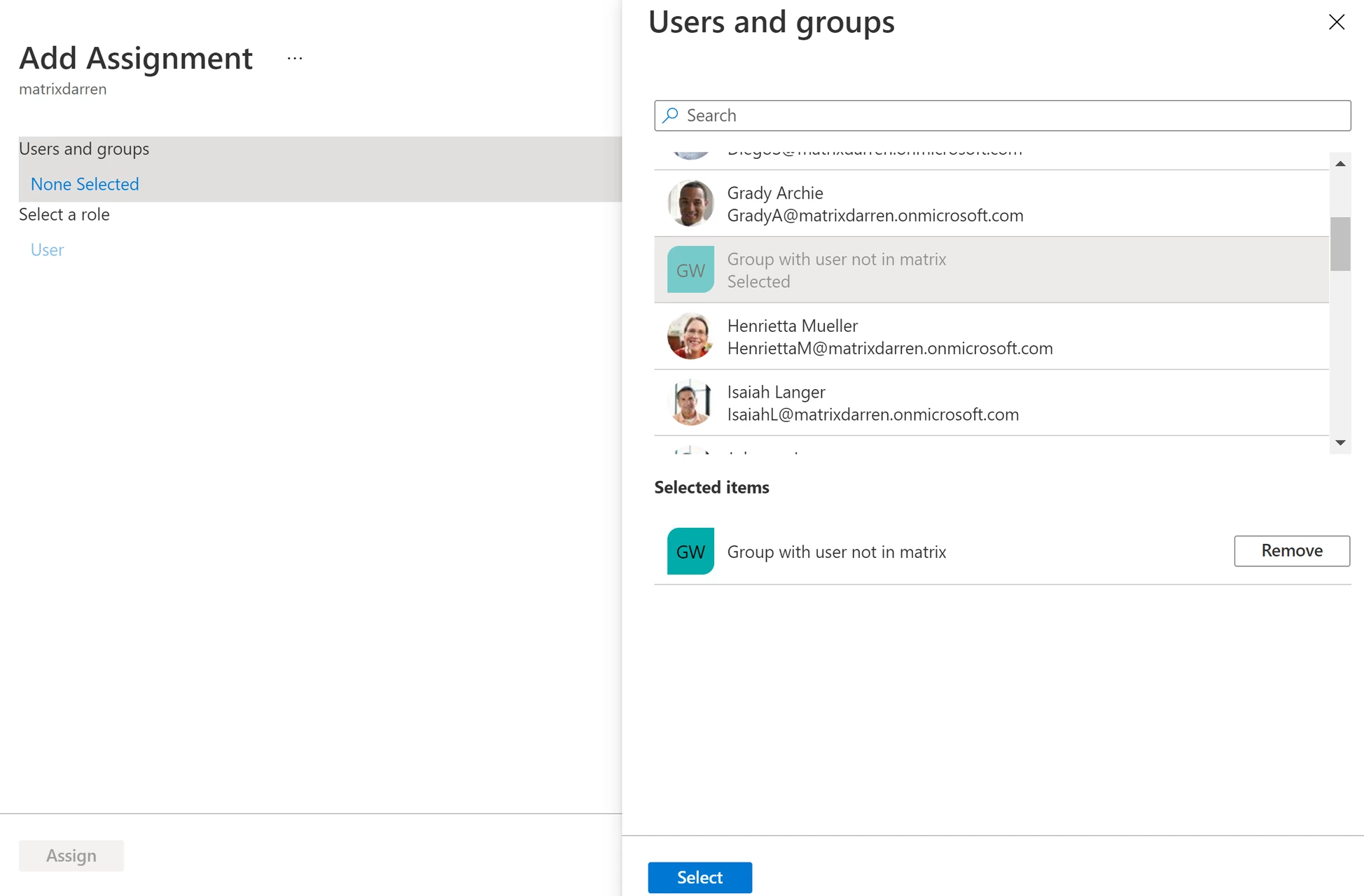 Select the group you wish to add and assign to the application.