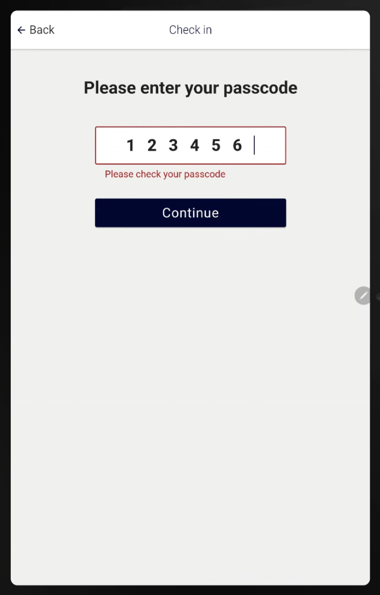 At any point during the check in or check out processes, you can select Back to return to the previous screen and edit your information.