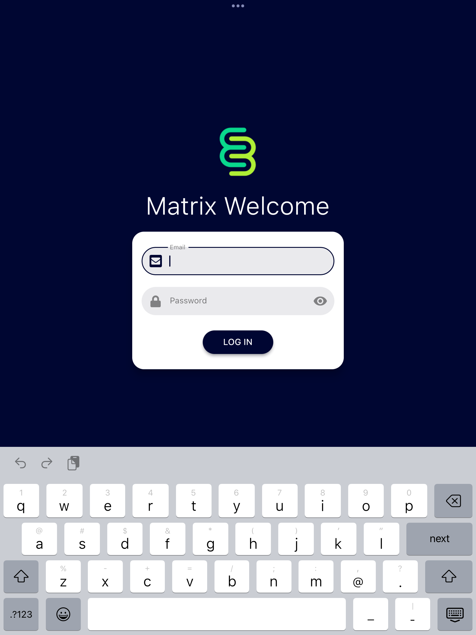 When opening the app for the first time, a login screen will be shown. Logging in needs to be done only once and is the first step to setting up the Welcome app. It determines the Matrix Booking account that you’ll connect to.